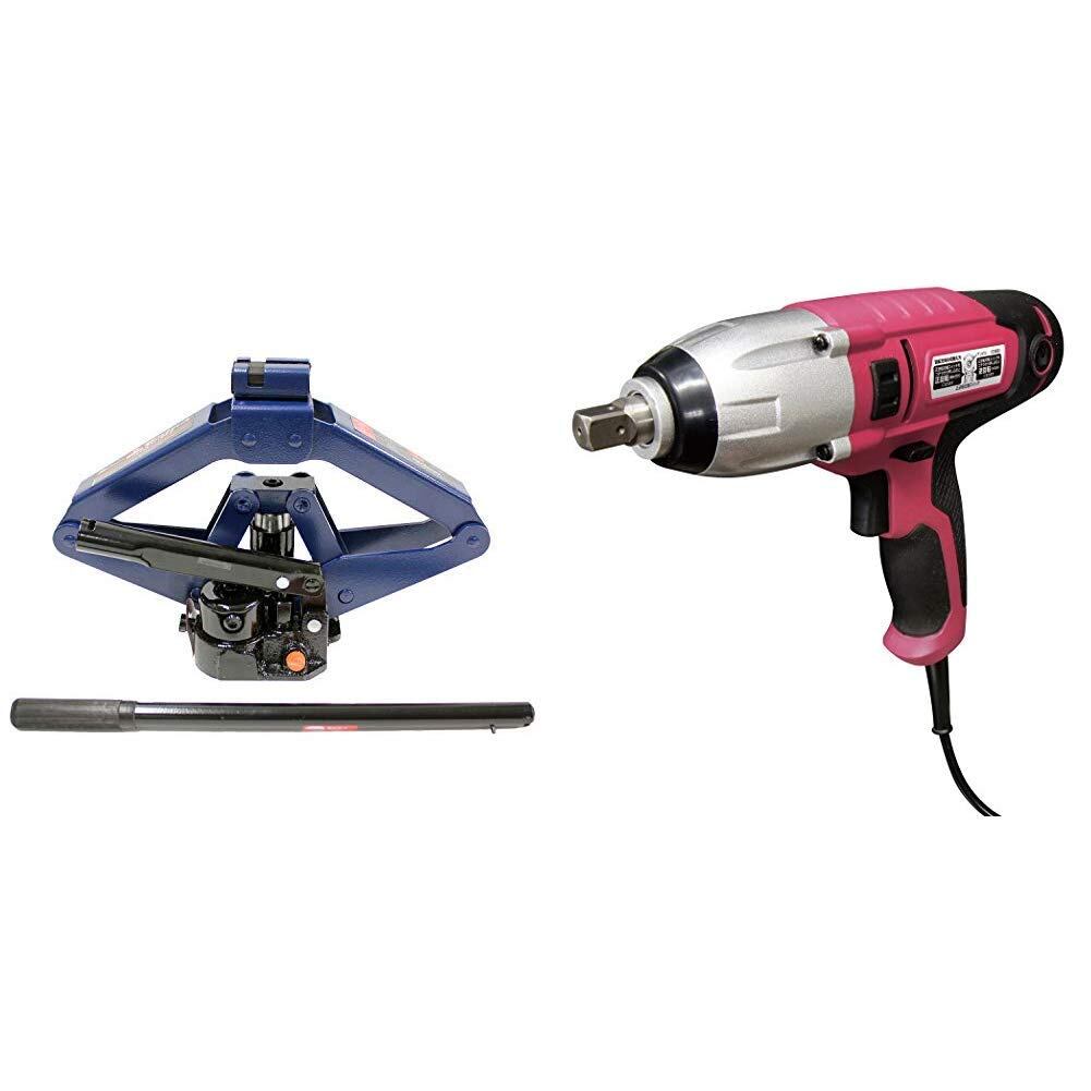 メルテック 1t油圧パンタジャッキ コンパクトα 最高値/最低値 383/144mm ジャッキアタッチメント・ブローケース付 FA-60 + 電動インパクトレンチ ソケットサイズ:薄型ロングタイプ19/21mm AC100V 締付トルク:250N カーボンブラシ2個入り Meltec FT-50P【セット買い】