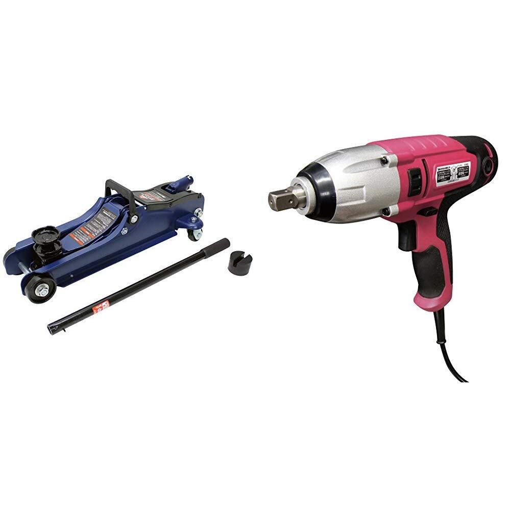 【在庫処分】メルテック 2t油圧フロアージャッキ ローダウン 最高値/最低値 335(365)/85(115) mm ジャッキタッチメント・サドル(30㎜UP) 付 FA-24 + 電動インパクトレンチ ソケットサイズ:薄型ロングタイプ19/21mm AC100V 締付トルク:250N カーボンブラシ2個入り Meltec FT-50P【セット買い】 | POPストア