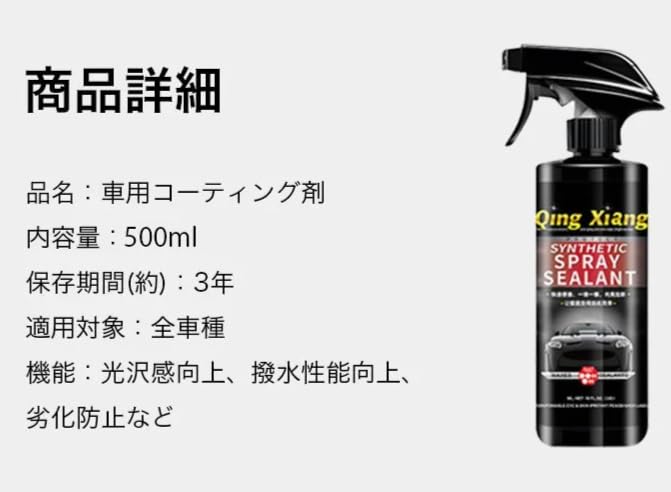 【500ml車用コーティング剤】車内どこでも使えます。安全で環境に優しい成分を使用しているため、仕上がりを損なうことはありません。クイックコーティングスプレー安心してお使いいただけます。