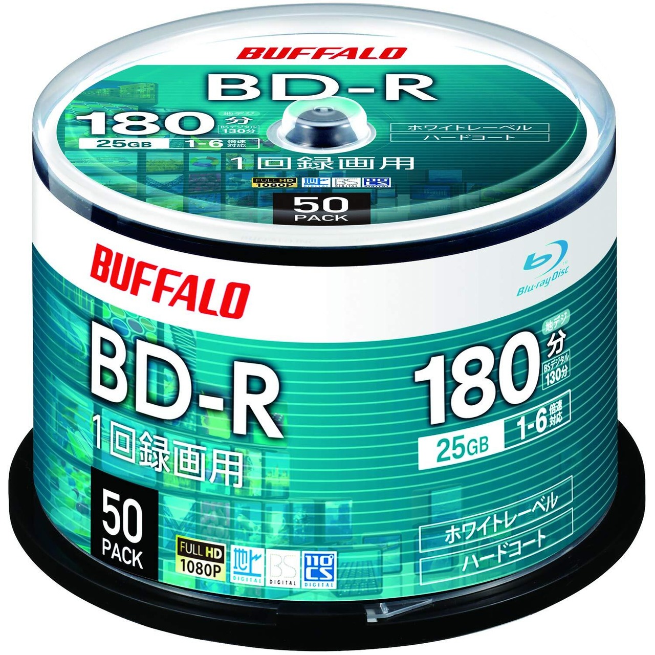 【数量限定】【Amazon.co.jp限定】 バッファロー ブルーレイディスク BD-R 1回録画用 25GB 50枚 スピンドル 片面1層 1-6倍速 【ディーガ(2016年発売以降) 動作確認済み 】 ホワイトレーベル RO-BR25V-050PW/N | POPストア