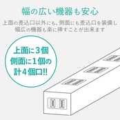 未使用時にほこりの侵入を防止する「ほこり防止シャッター」を装備した電源タップです。