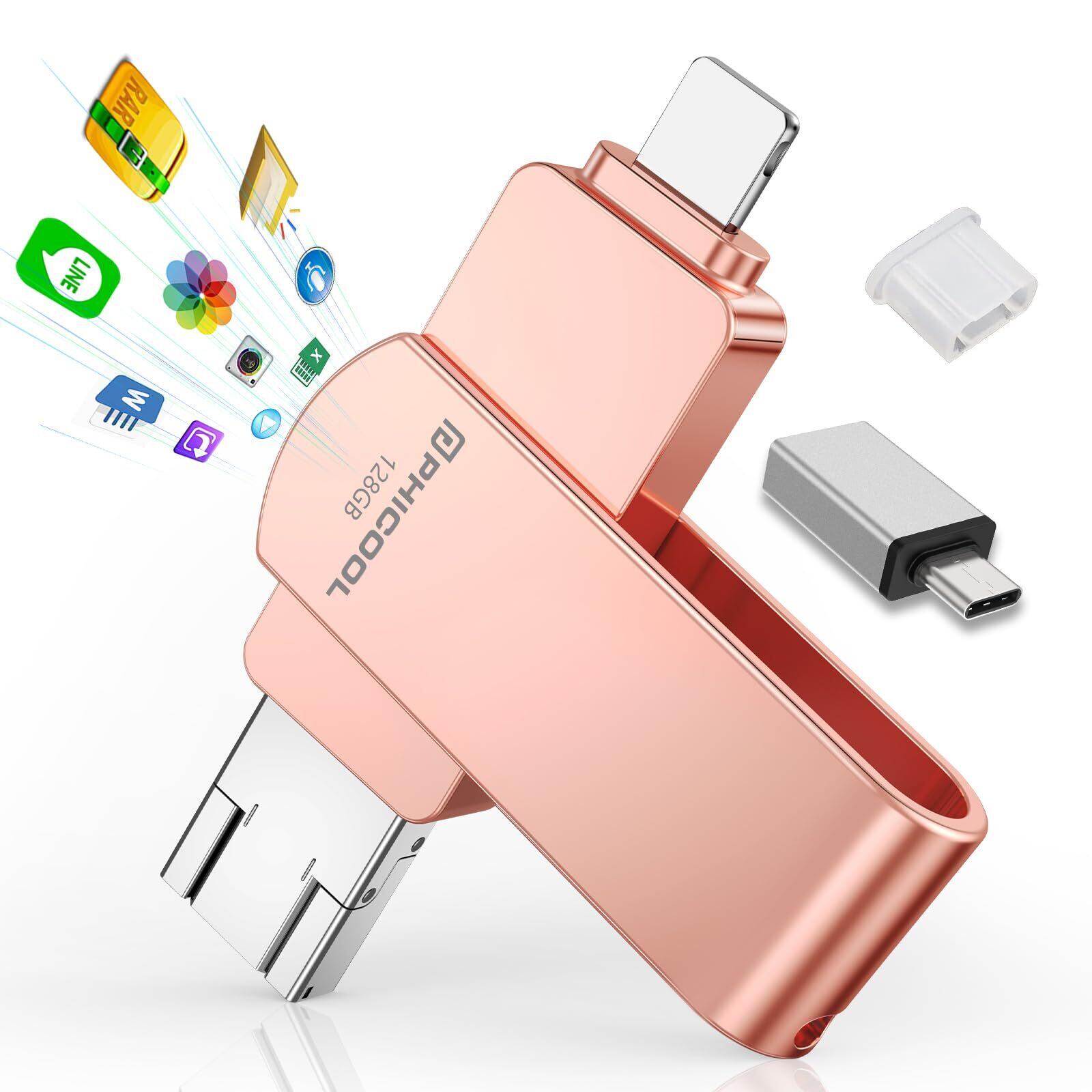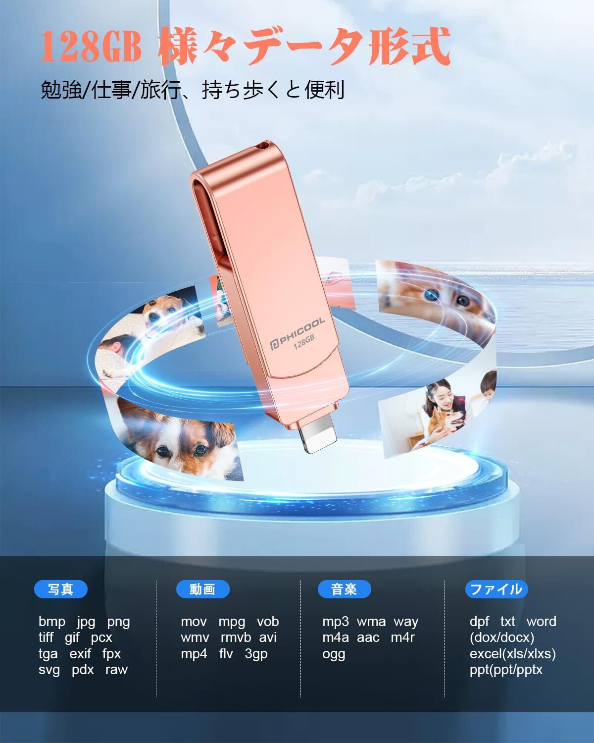 【特価セール】4 in1 usbメモリ【アプリ不要 アルバムから直接保存出来 】 フラッシュメモリ IOS/Android/PC USB高速 4 in1 Phone usbメモリ スマホ usbメモリphone バックアップ usbメモリ タイプc usbメモリ 外付けusbメモリー 容量不足解消写真沢山撮る人に必要なusbメモリ! (ピンク, アプリ不要 128GB) | POPストア