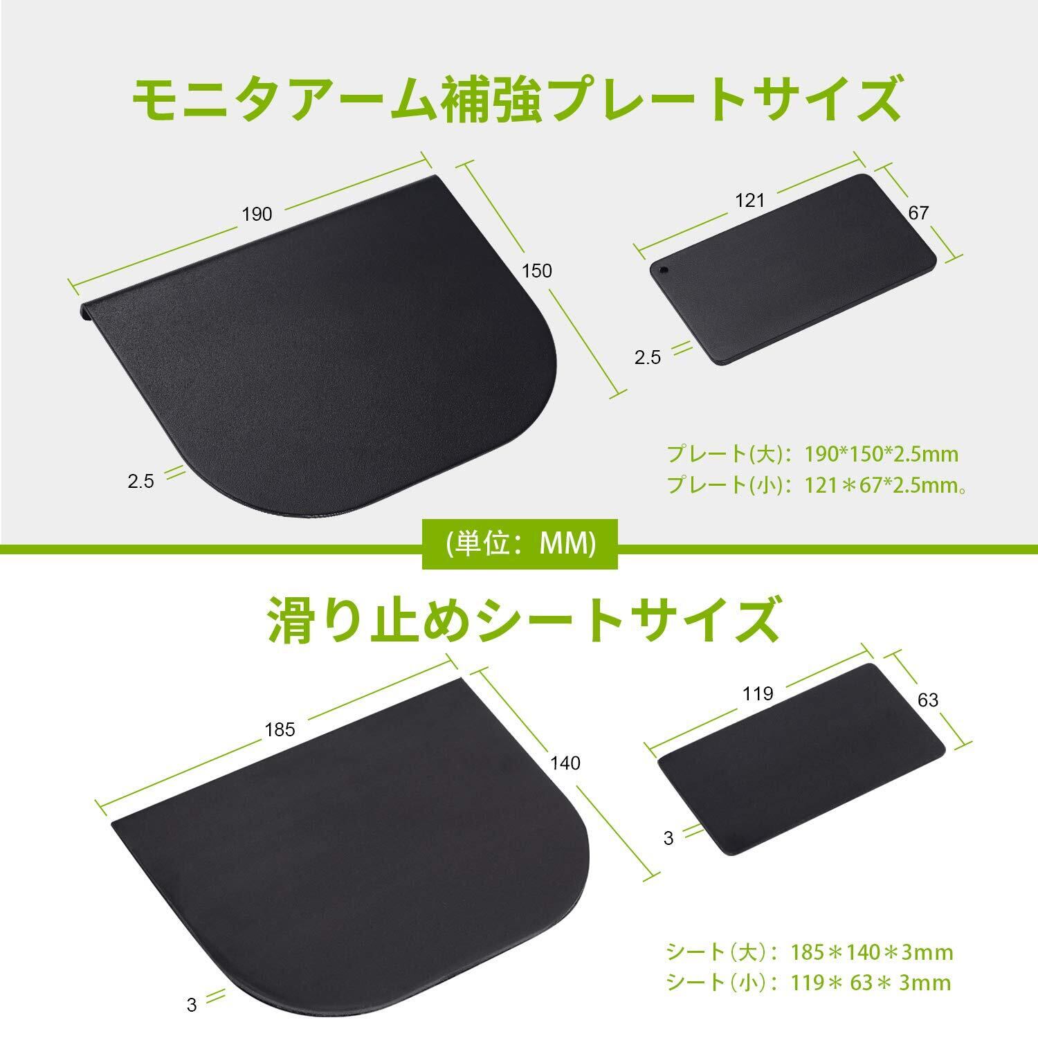 ZepSon モニターアーム補強プレート 取付部硬さ強化対策 デスク保護 傷防止 滑り止めシート付き (黒色)