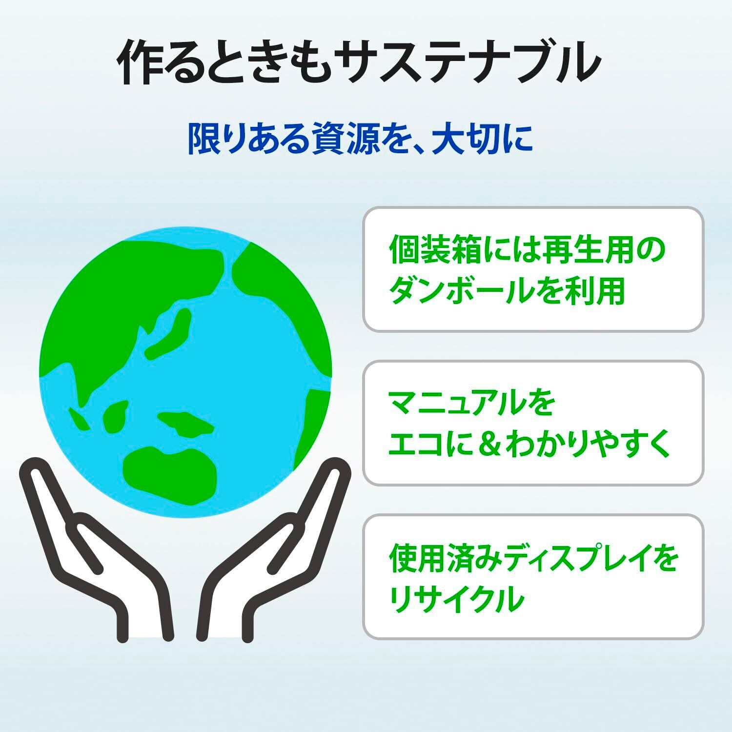 【作るときもサステナブル】個装箱には再生用のダンボールを利用しております。また、製品へ添付する取扱説明書はサイズを縮小し、オンラインマニュ アルを拡充しました。