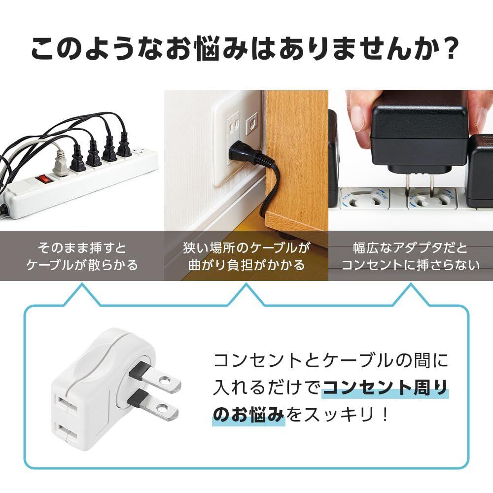 【お悩みを解決】コンセントとケーブルの間に入れるだけでコンセント周りのこんなお悩みをスッキリ!「そのまま挿すとケーブルが散らかる」「狭い場所のケーブルが曲がり負担がかかる」「幅広なアダプタだとコンセントに挿さらない」