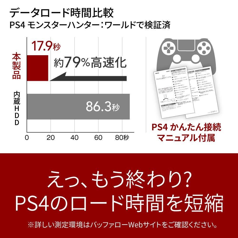 【ゲームの高速起動・ロード】 PS4の起動時間・データロード時間を約79%高速化。シームレスなゲームプレーをらくらくセットアップで実現※測定環境はバッファローWebサイト参照