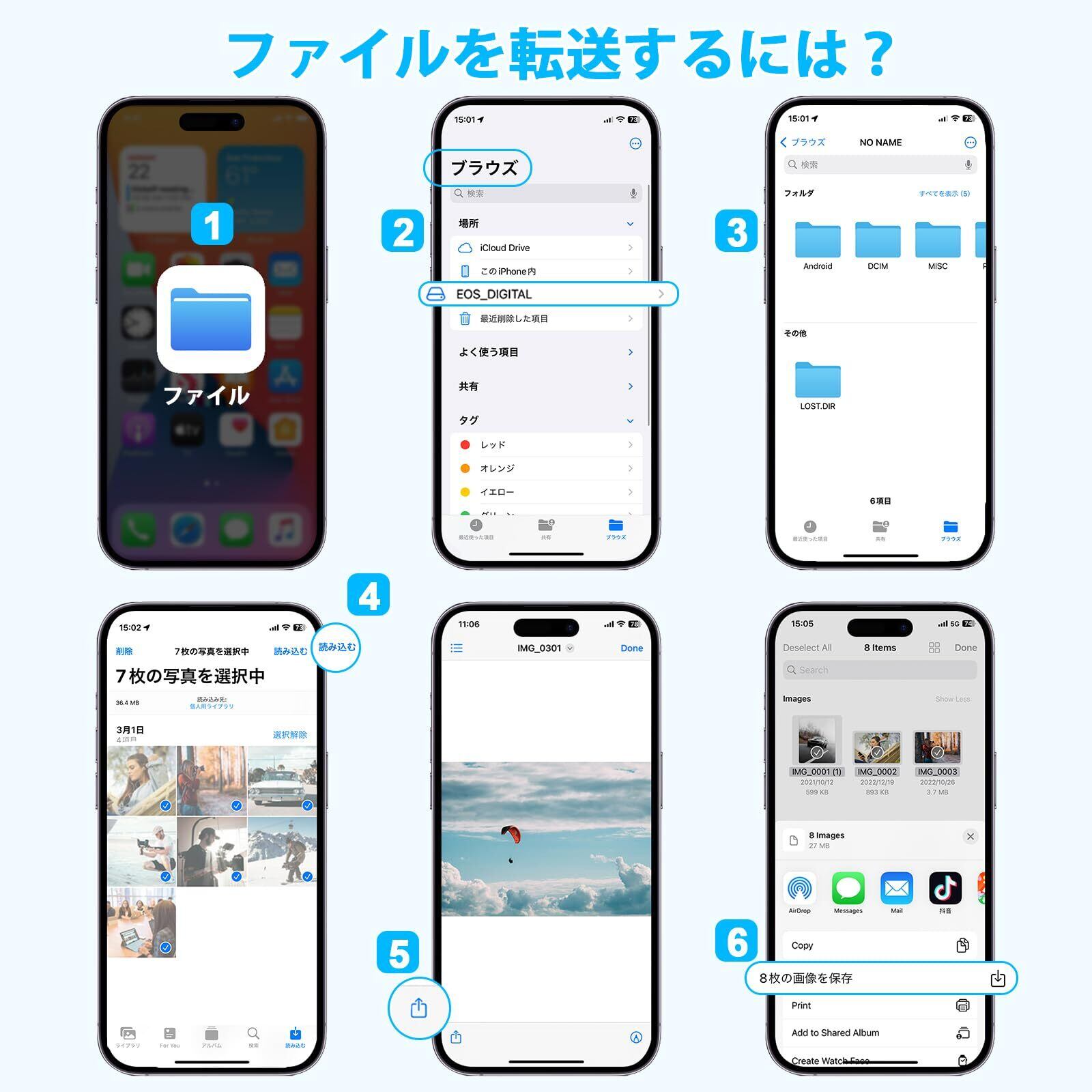 【プラグアンドプレイ、同時読み書き】PC/WIFI/Bluetooth/ダウンロードは不要。iOS標準の[ファイル]アプリからデータ転送。2台のUSBフラッシュドライブとメモリーカードの同時読み書きをサポート。 注:SDカードとTFカードは同時に読み書きできません。