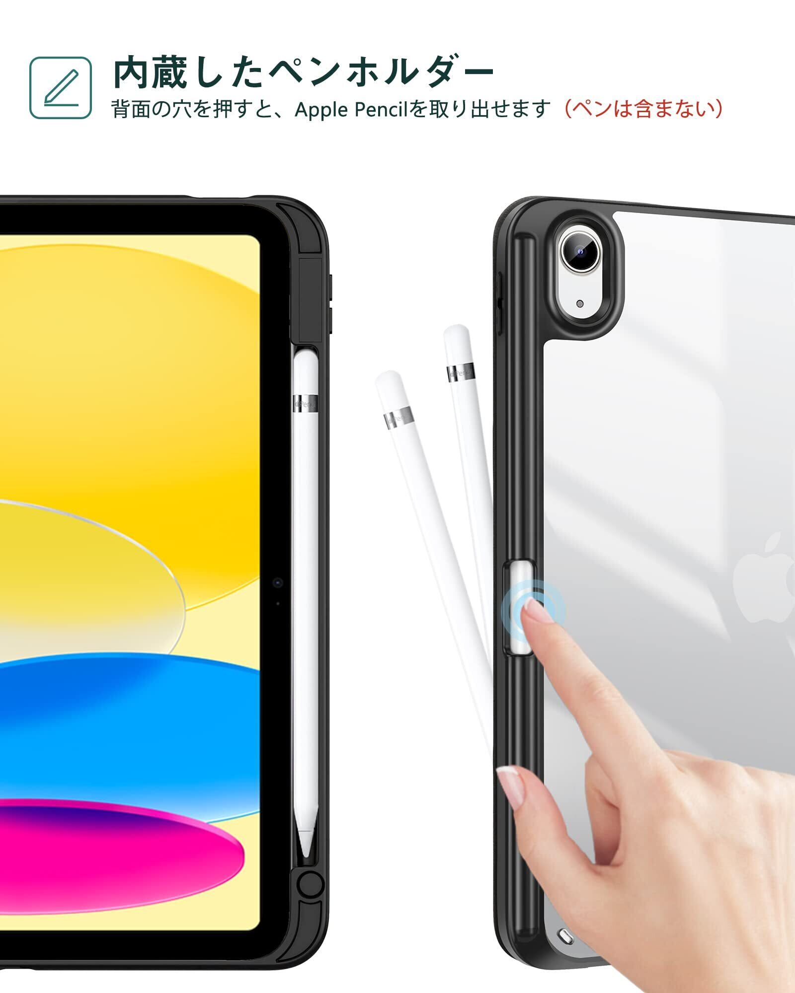 透明でつや消しのPCバックカバーはアイコンを表示し、iPadを衝撃、指紋、引っかき傷から保護します。内蔵したマグネットにより、オートスリープ/ウェイクに対応します。