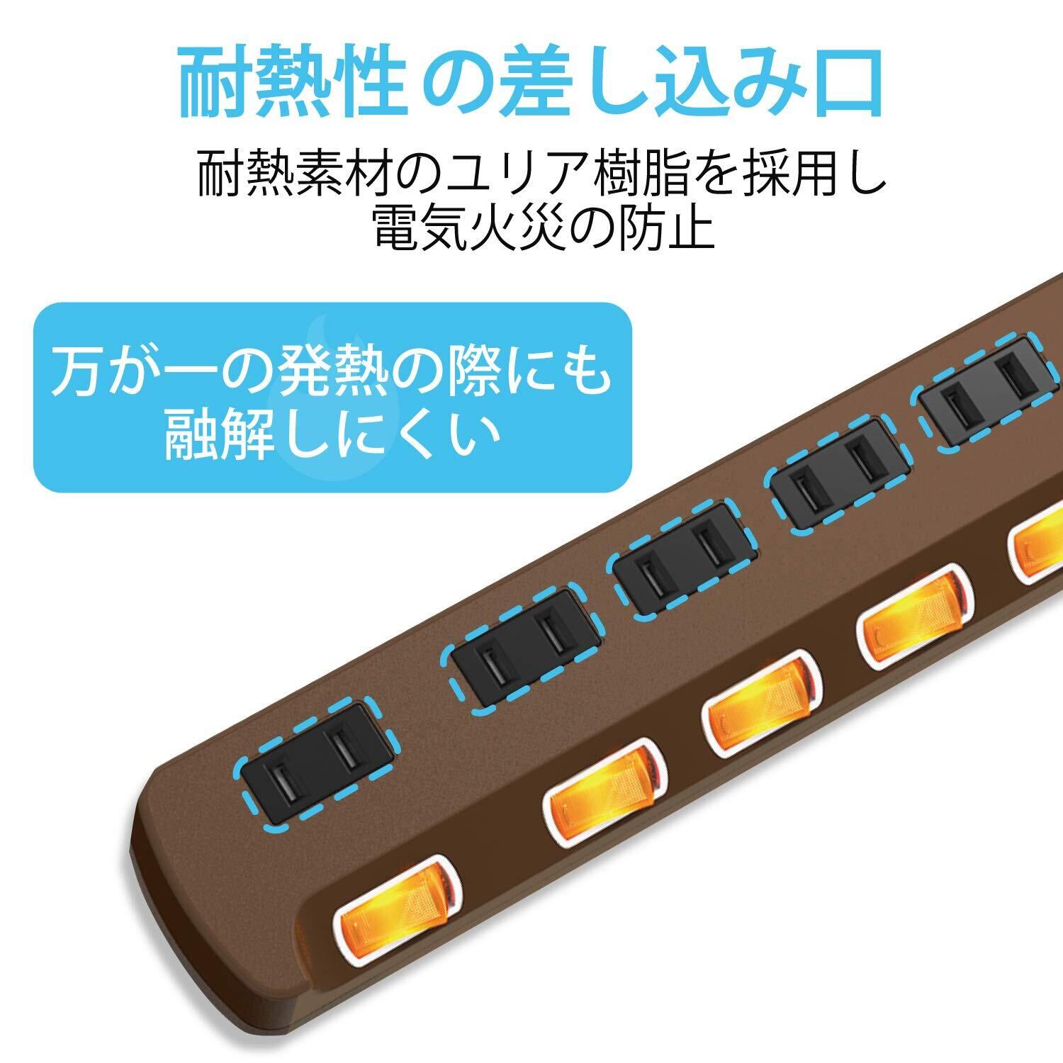 エレコム 電源タップ コンセント 雷ガード 個別スイッチ ほこりシャッター付 6個口 3m ブラウン T-K6A-2630BR