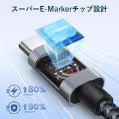 【安全な保護機能搭載と保証】過充電、発熱と短絡を防止するE-markerスマートチップを搭載し、安定性の高い急速充電と大切な機器の損傷防止を実現します。