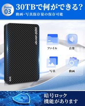【大容量ポータブルHDD (30TB)】30TBのハードディスクは、写真、動画、音楽、ゲームなどの大切なデータをまとめて保管可能。家庭用やオフィスでの日常バックアップに最適なストレージ容量を実現します。