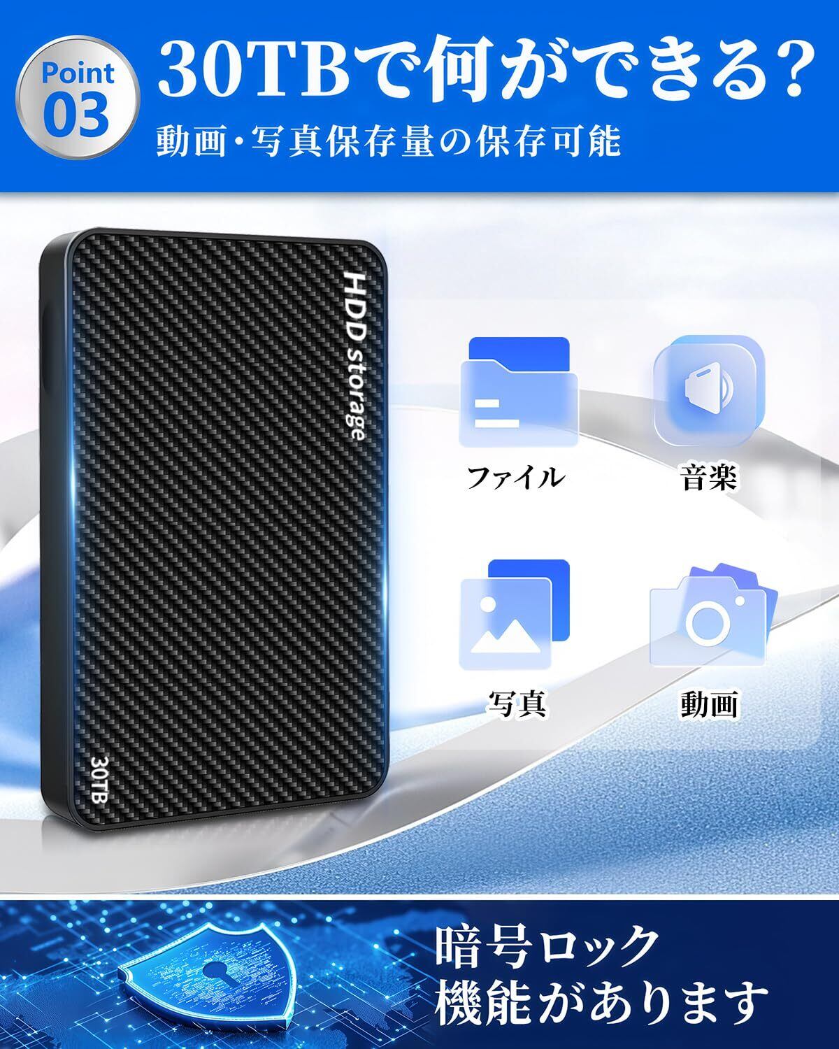 【在庫処分】外付けHDD 30TB 超高速データ転送 超高速 外付けハードディスク大容量ストレージ 外付けコンパクト usb3.1 Type-C hdd 外付け 耐衝撃 防滴 防塵 熱制御 外付けドライブ Windows/Mac対応 hdd ストレージ コンパクト 持ち運び便利【五年品質保証】ポータブルHDD | POPストア