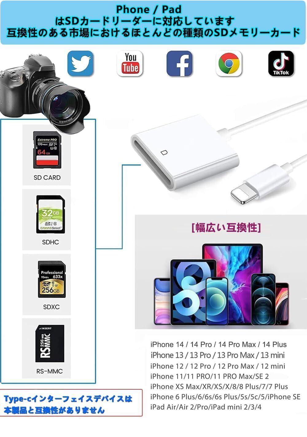 【数量限定】SDカードリーダー【2025新登場】カードリーダーライトニング sdカードカメラリーダー デジカメ スマホ転送 i-Phone/i-Pad用 高速転送 高精細写真動画/音声ファイル/4Kビデオ 読み込みWord/Excle/PPT/PDF 双方向高速データ転送 設定不要 最新IOS16対応