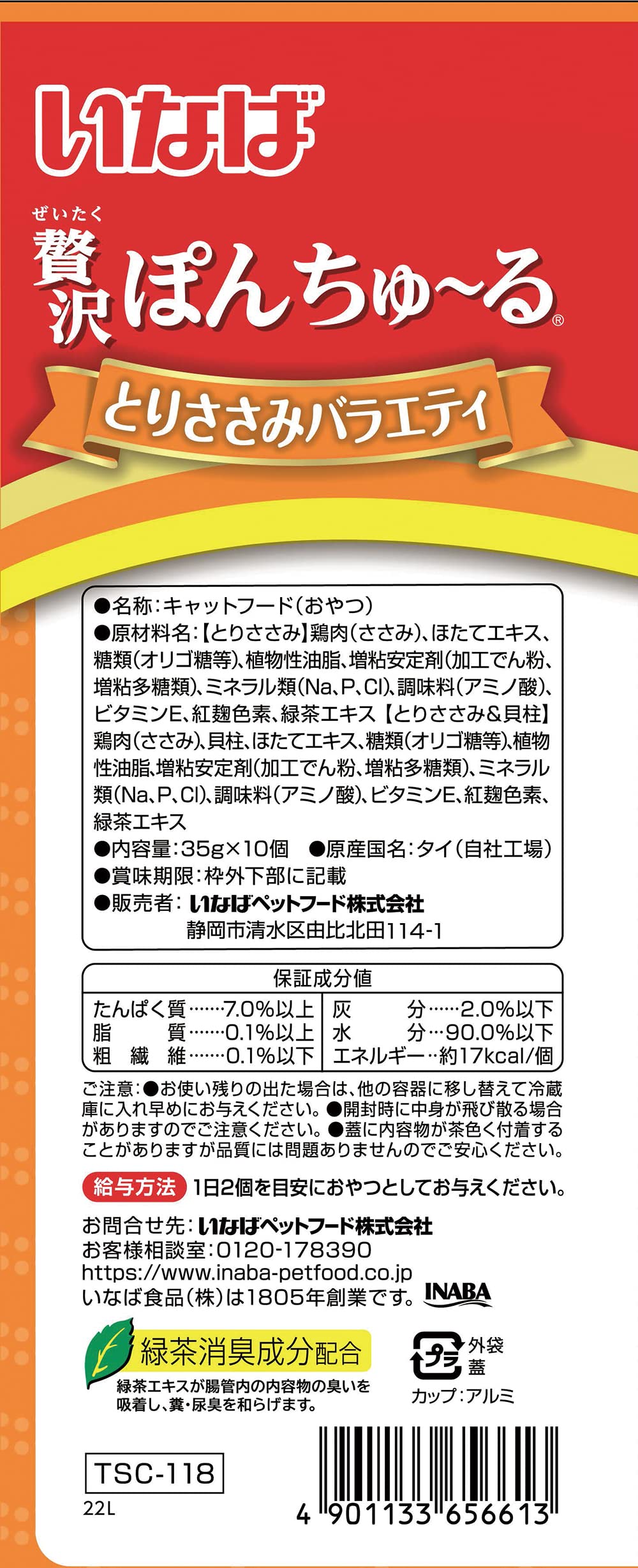 いなば 猫用 贅沢ぽんちゅ~る とりささみバラエティ 35g×10個