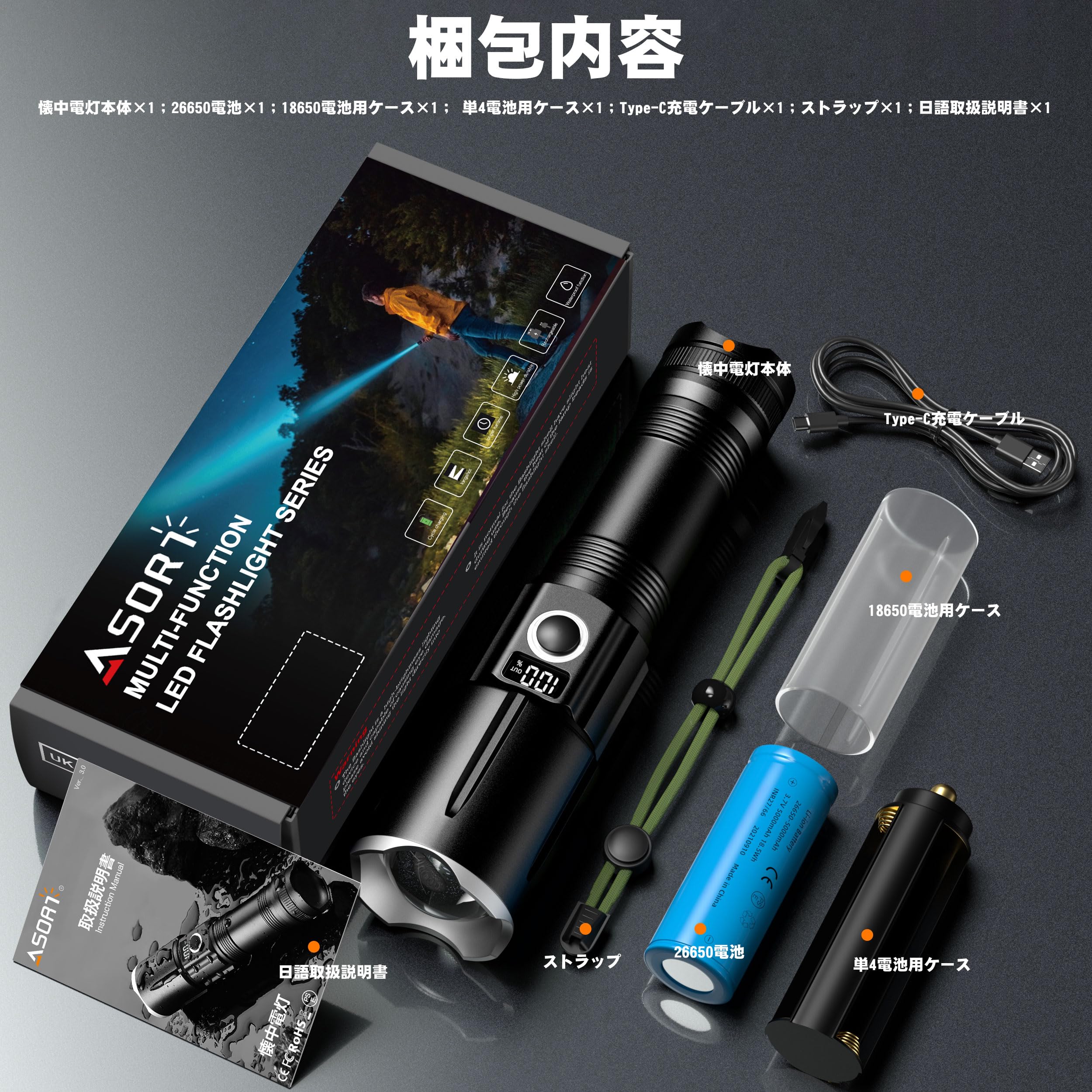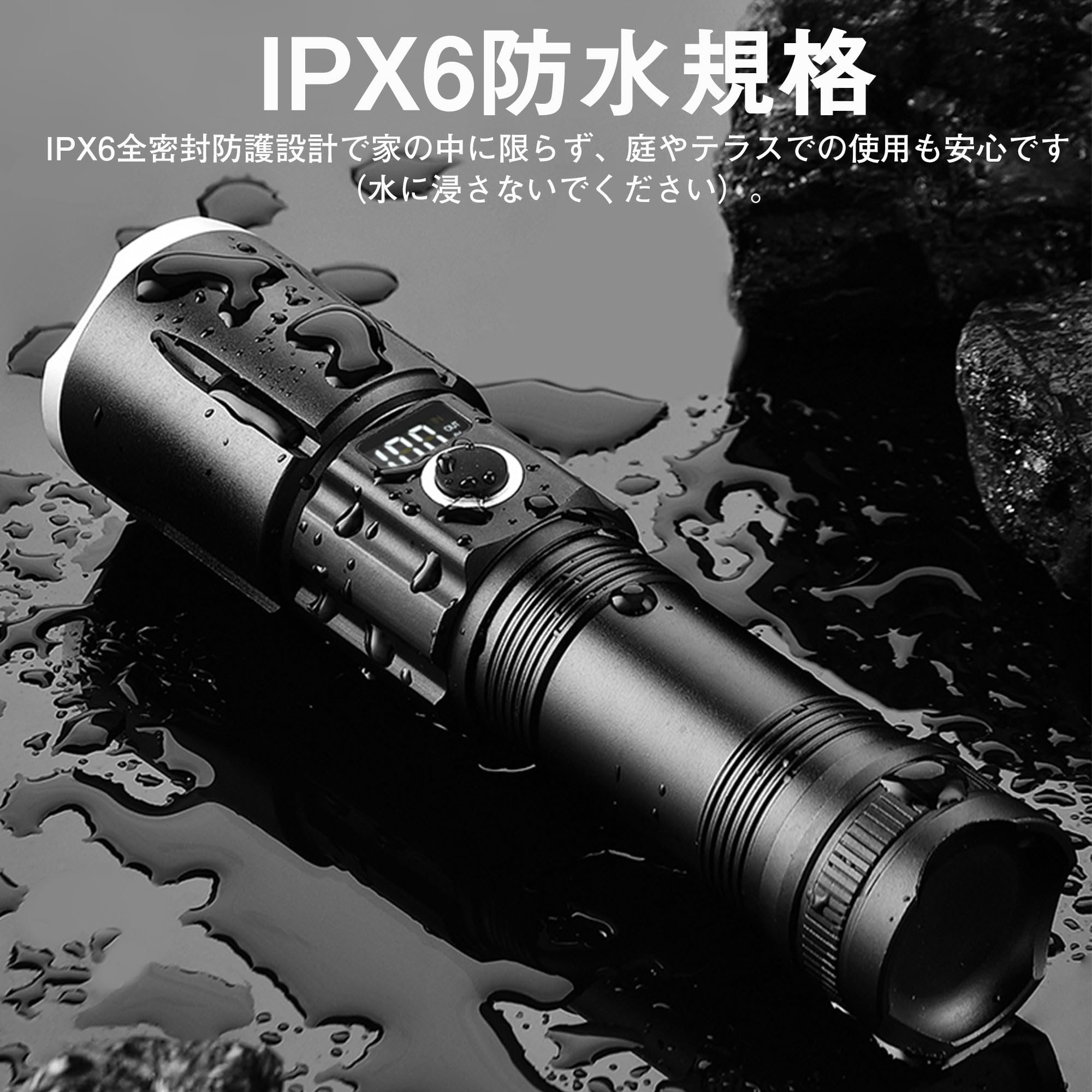 【新春セール】懐中電灯【新登場 記憶機能 液晶画面デジタル残量 ledライト 】 強力 軍用 最強 超高輝度 2000000ルーメン 超長遠射 明るいライト 多機能調光 ズーム式 手持ちライト 軽量 作業ライト USB充電式 ハンドライト 電池式 フラッシュライト 新型 大容量 作業灯 IPX6防水 防災 地震 停電対策 応急手当品 登山 釣り キャンプ へっとライト | POPストア