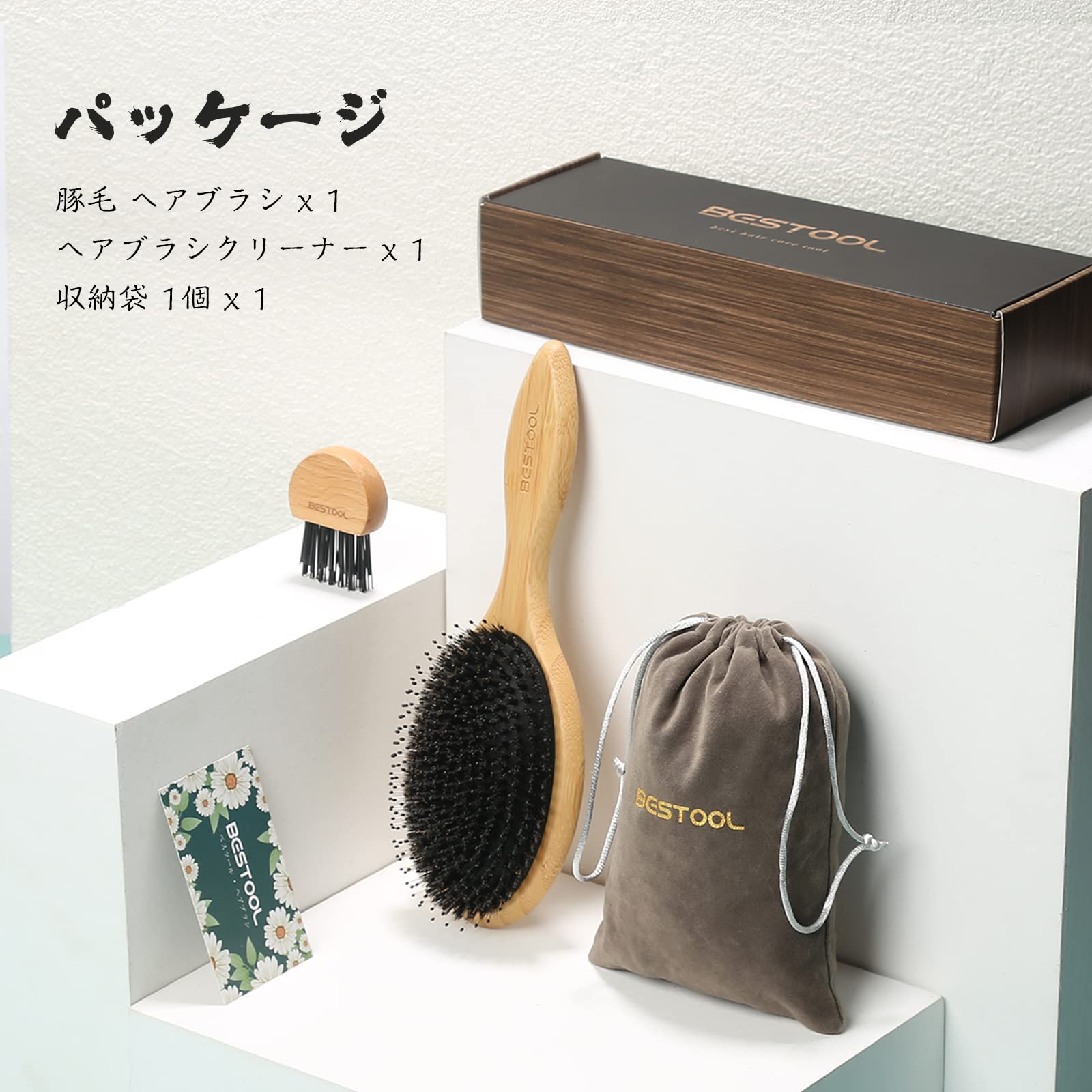BESTOOL ヘアブラシ 豚毛 くし 木製 櫛 パドルブラシ メンズ レディース こども ヘアケア 高? コーム 頭皮マッサージ サラサラ 艶髪 絡まない 髪質改善