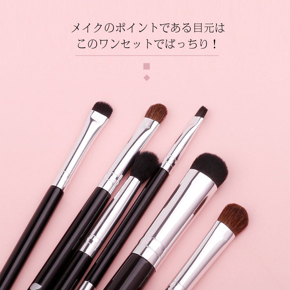 【アイメイク専用ブラシ6本セット】アイシャドウブラシ(2本)、ブレンディングブラシ、コンシーラーブラシ、アイブロウブラシ&スクリューブラシなどがセットの中に入っている。