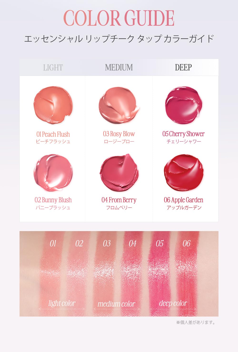 【在庫処分】ESSENTIAL LIPCHEEK TAP エッセンシャル リップチーク タップ マルチバーム リップ&チーク 血色感 透明感 4.5 g クリオ 6カラー (02 BUNNY BLUSH 4.5g) | POPストア