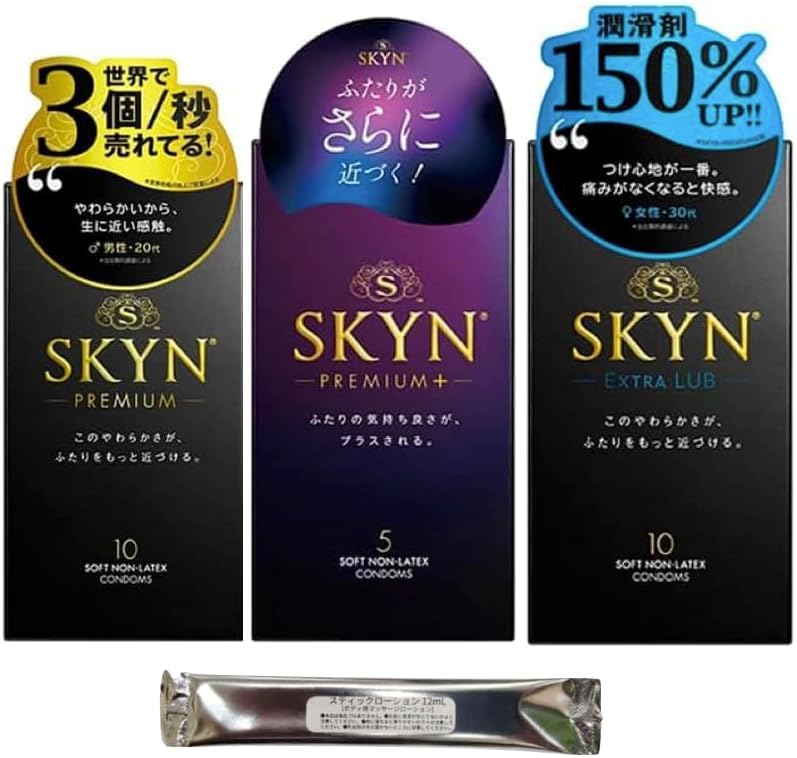 【3種セット】 SKYN アイアール コンドーム (プレミアム10個+エクストラルブ10個+プレミアムプラス5個)ローション付き