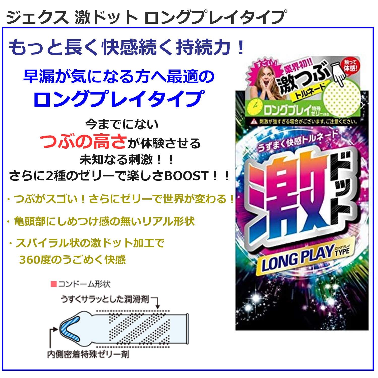 【激ドット ロングプレイタイプ】 もっと長く快感続く持続力! 今までにないつぶの高さで刺激!・スパイラル状の激ドット加工 ・内側に密着特殊ゼリー剤 ・先端にしめつけ感の無いリアル形状 ・うすくサラッとした潤滑ゼリー付き ・無着色