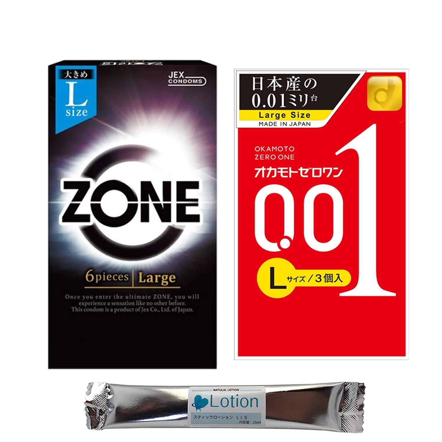 ジェクス ZONE オカモト 0.01 ゼロワン Lサイズ コンドーム lサイズ 2箱セット スティックローション1本付き