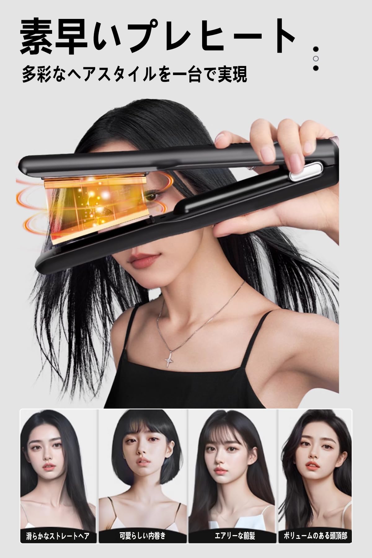 【ストレート&カール両用】このヘアアイロンはストレートとカールの両方に対応しており、髪をまっすぐに整えるだけでなく、ふんわりとしたカールスタイルも作れます。忙しい朝や旅行先でも、その日の気分やシーンに合わせて簡単かつ迅速に多彩なヘアスタイルを楽しめます。ヘアアイロンのこのシンプルな機能により、日常のスタイリングにさらなる選択肢とクリエイティブな可能性が広がります。