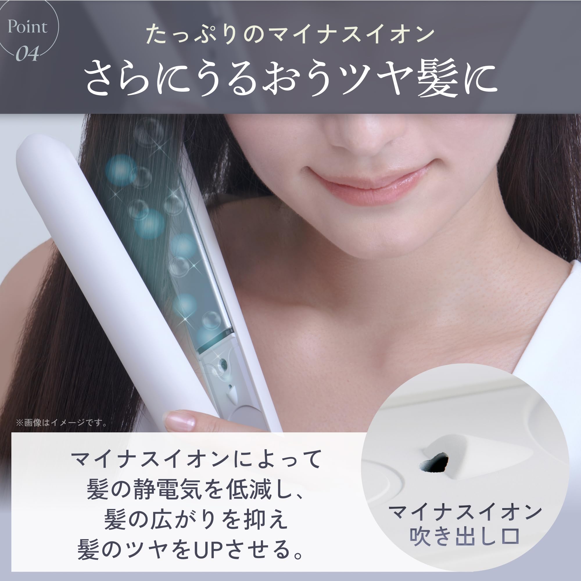 ? 【マイナスイオンで“しっとりまとまる”ツヤ髪に】 たっぷりのマイナスイオンが髪表面のキューティクルを整え、広がりやパサつきを抑えてうるおいキープ。しっとり艶やかにまとまる髪は、日常の仕草まで美しく演出します。美容師さんにも愛用されている、信頼のクオリティ。