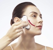 絶妙なカーブを描くシーガルラインが頬にグイッと深く入り込み、すくい上げることで、筋膜にしっかりとアプローチ。