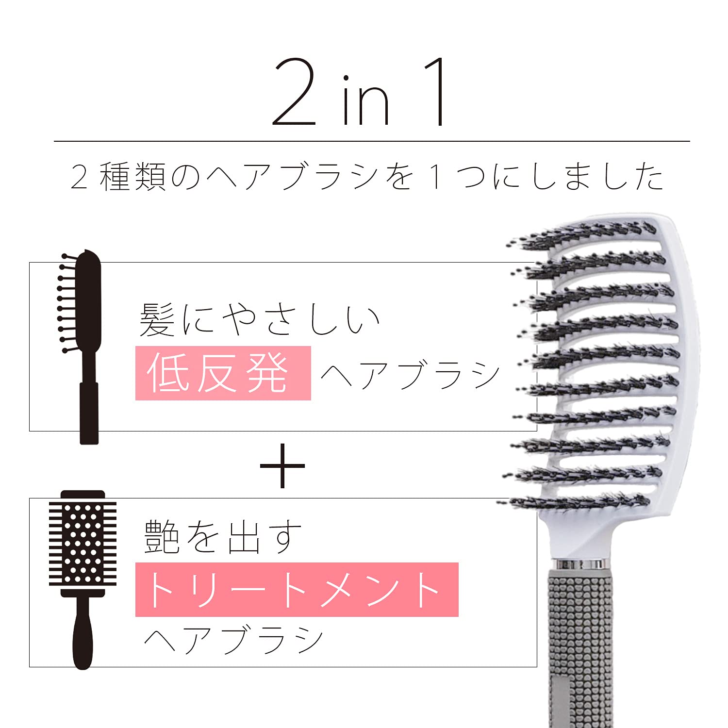 「60%やわらかい美髪ブラシ」と「ツヤを出すトリートメントブラシ」の2つが1つに