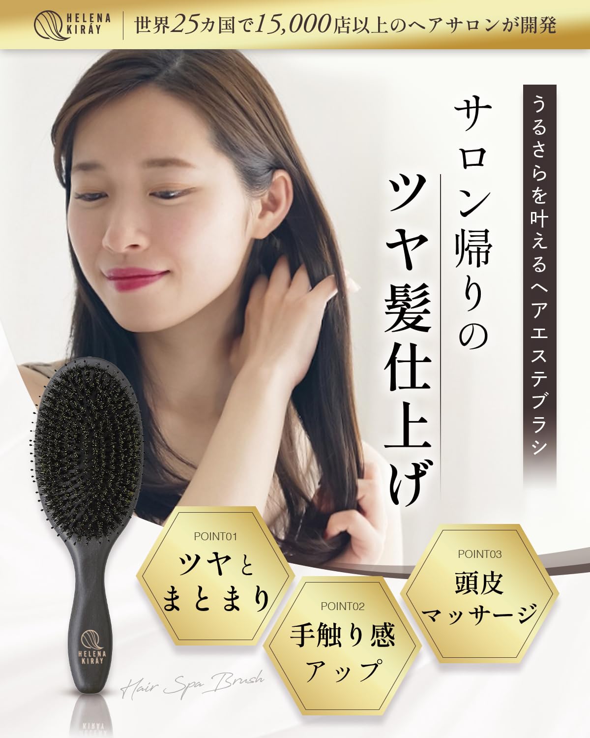 【2022最新】HELENA KIRAY ヘアブラシ パドルブラシ ブラシ 【こだわりの猪毛と天然木を使用×くせ毛でもツヤツヤでサラサラへ】 (木製ブラウン・ラウンド(丸型) Lサイズ) | POPストア