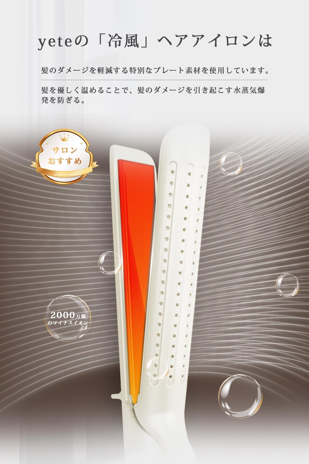 yete ヘアアイロン ストレート ヘアアイロン 2way 美容師プロ ヘアケア 360°冷風技術&手持ち熱くない 160個の冷風出口ナノケア 5段階温度調節 ヘアーアイロン コテ 海外対応 正規品 60分オートオフ White