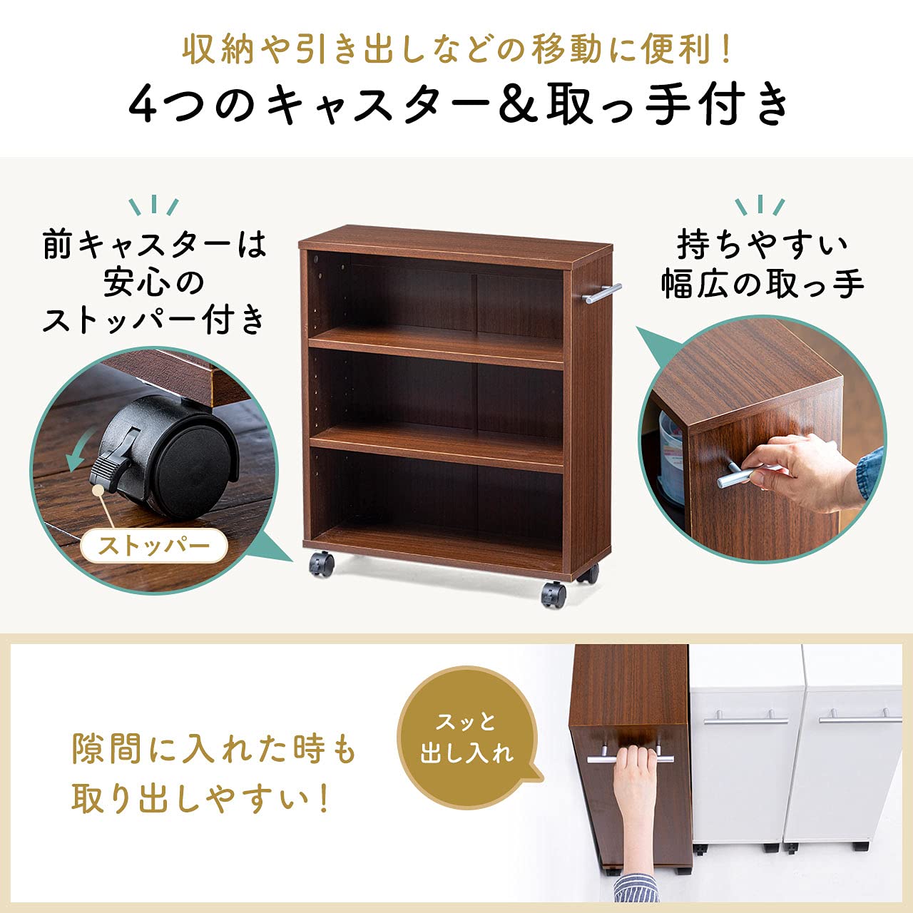 サンワダイレクト すきま収納ラック キャスター付 幅20.5cm×奥行き55.5cm 棚板高さ調整 総耐荷重20kg ホワイト 200-FCD070W