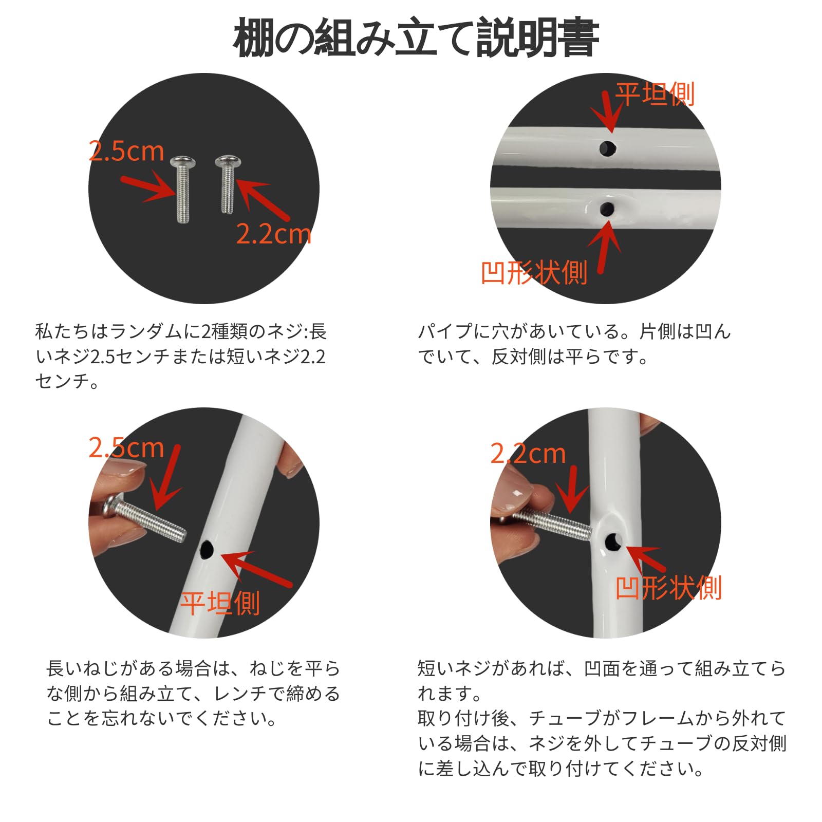 【簡単組み立て】キッチンワゴンは、簡単に組み立てられ、しっかりしています。組み立て図解付きの説明書も同梱されており、ねじ回しとレンチも付属しています。組み立てには約10分程度かかりますが、完成後はネジをしっかり締めることでしっかり固定され、動かなくなります。3段のワゴンとなっています。