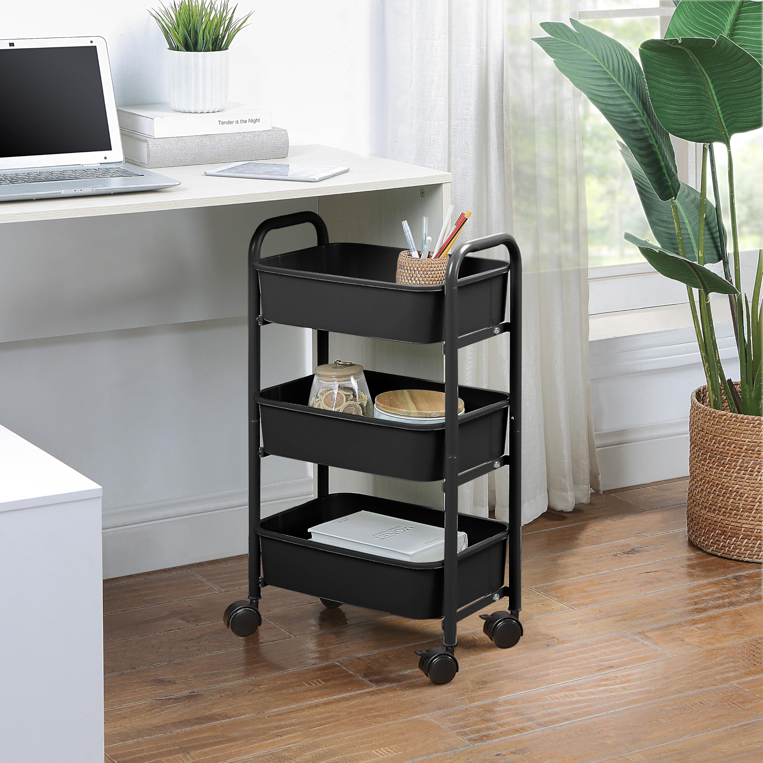 【在庫処分】サニーポイント キッチンワゴン スリム 3段ラック ミニコンパクト バスケットトローリー キャスター付き 小物 収納ワゴン オフィス キッチン 隙間 デスク下 洗濯室 収納 プラスチックポックス 軽量タイプ (39*27*68.6cm) (3段 黒) | POPストア