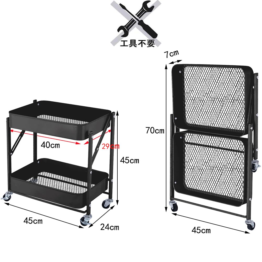 【特価セール】Melody House キッチン ワゴン キャスター付き 2段 取り付け簡単 折りたたみ式 折畳可能 隙間収納 テーブル下収納ワゴン 収納わごん サイドテーブル ワゴン スリム ミニ ベビーワゴン ブラック | POPストア