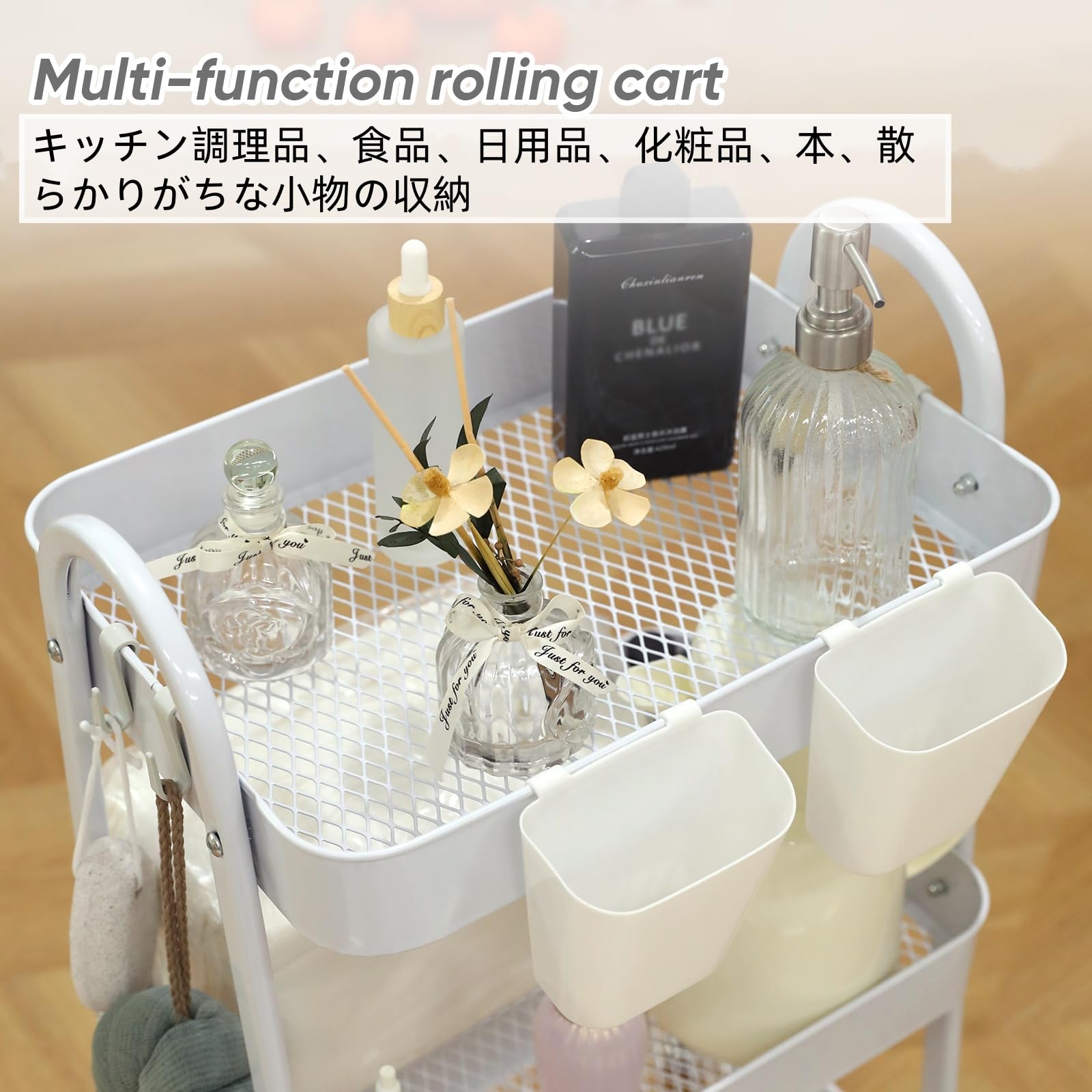 【数量限定】Ufriandz キャスター付きワゴン 3段, サロン 収納ワゴン ラック,移動式調味料ラック おしゃれ スチール製 隙間収納 洗濯室 美容室 リビング ローリングメッシュ 組立簡単 ホワイト | POPストア