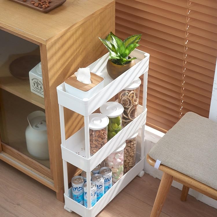 【狭いスペース用】SIUSAキッチンワゴンは、狭いスペースを整理するのに最適です。360度回転するキャスター付きで、家中どこにでも移動して収納できます。冷蔵庫横、台所、バスルーム、ランドリールーム、オフィス、狭い場所などの収納にフレキシブルに使用できます。