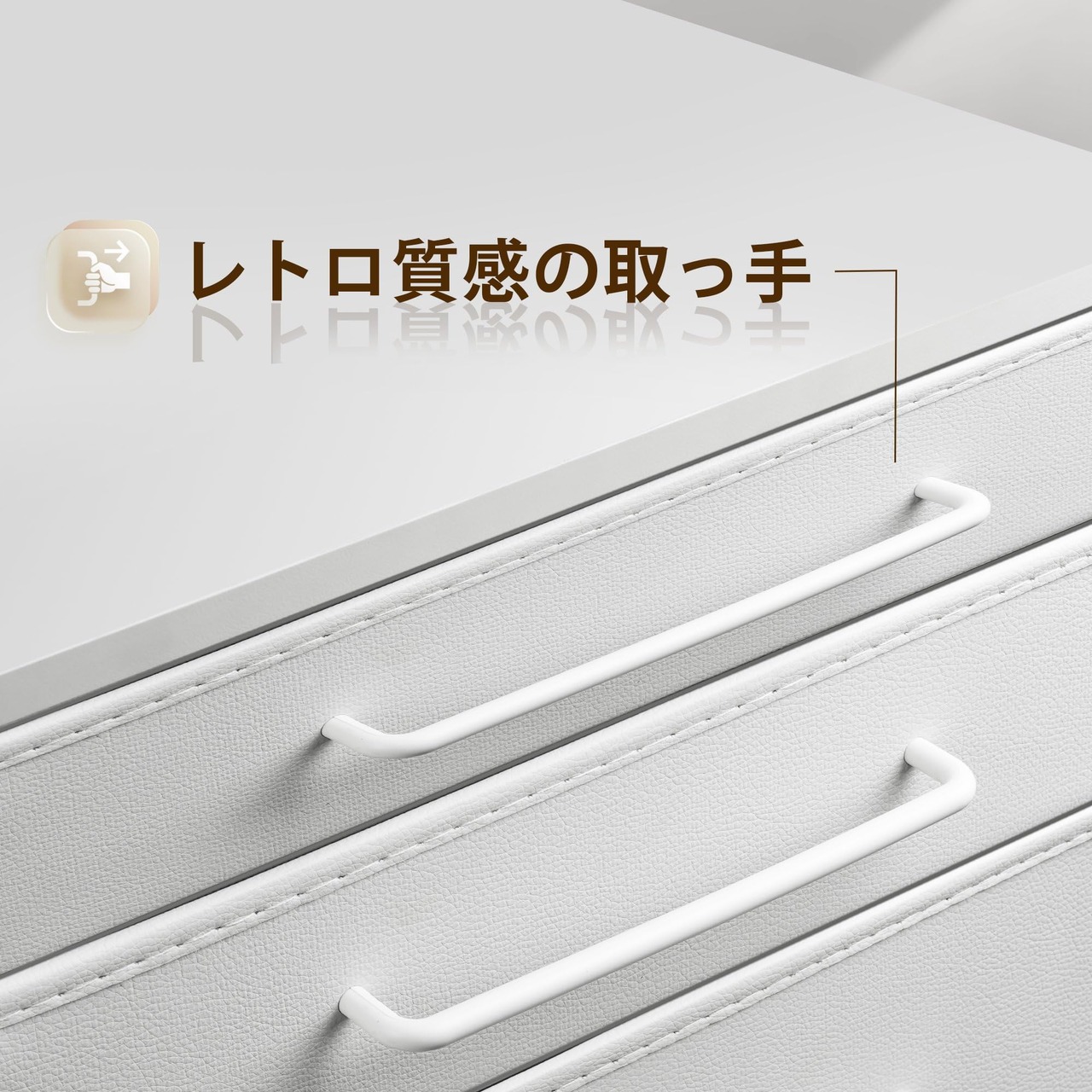 【温かみのあるデザイン】布制のキャビネットに金属のシンプルな取っ手と質感のある木制の天板を組み合わせました。シンプルなデザインと落ち着いた色合いで、単体の使用でも違和感なくインテリアになじみます。オフィスや寝室、リビングなど、さまざまな場所で使用できます。