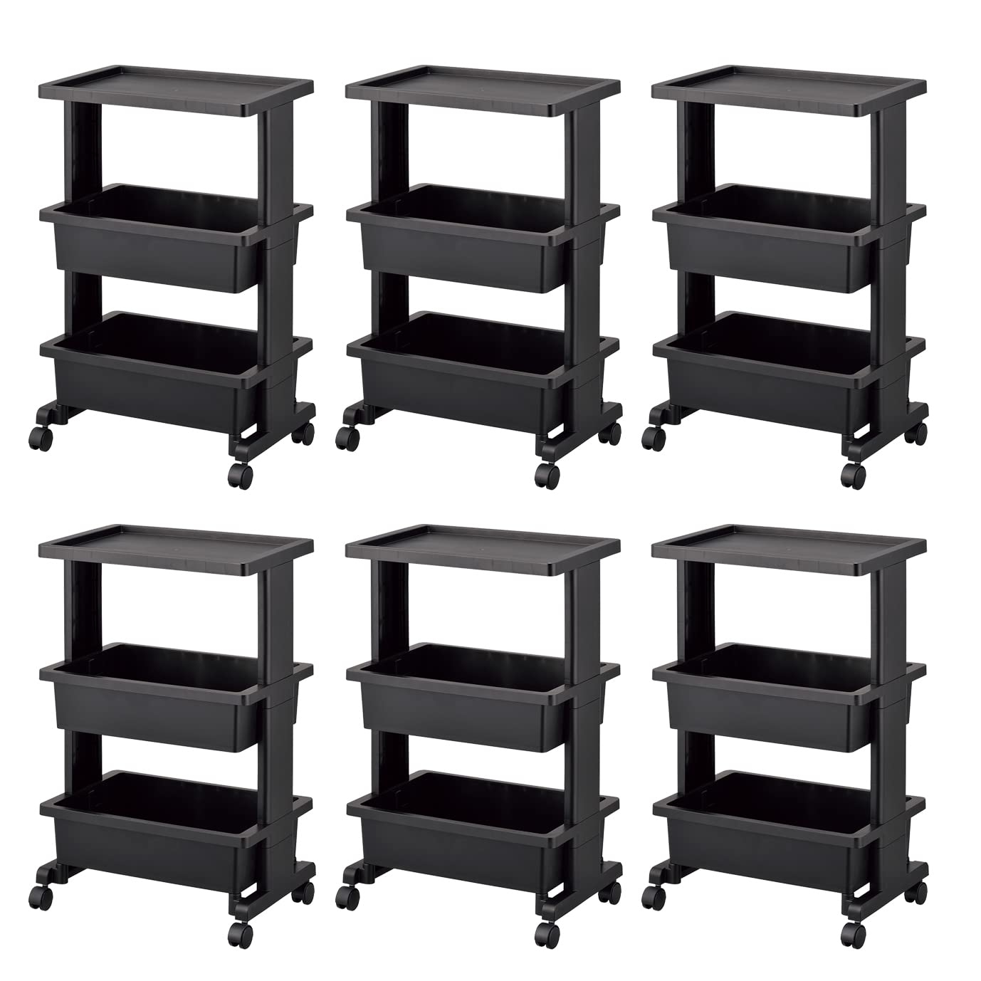 JEJアステージ リセ テーブルワゴン 3段 ブラック 簡単組立 日本製 キャスター付 幅45×奥行30×高さ71.5cm 6個セット