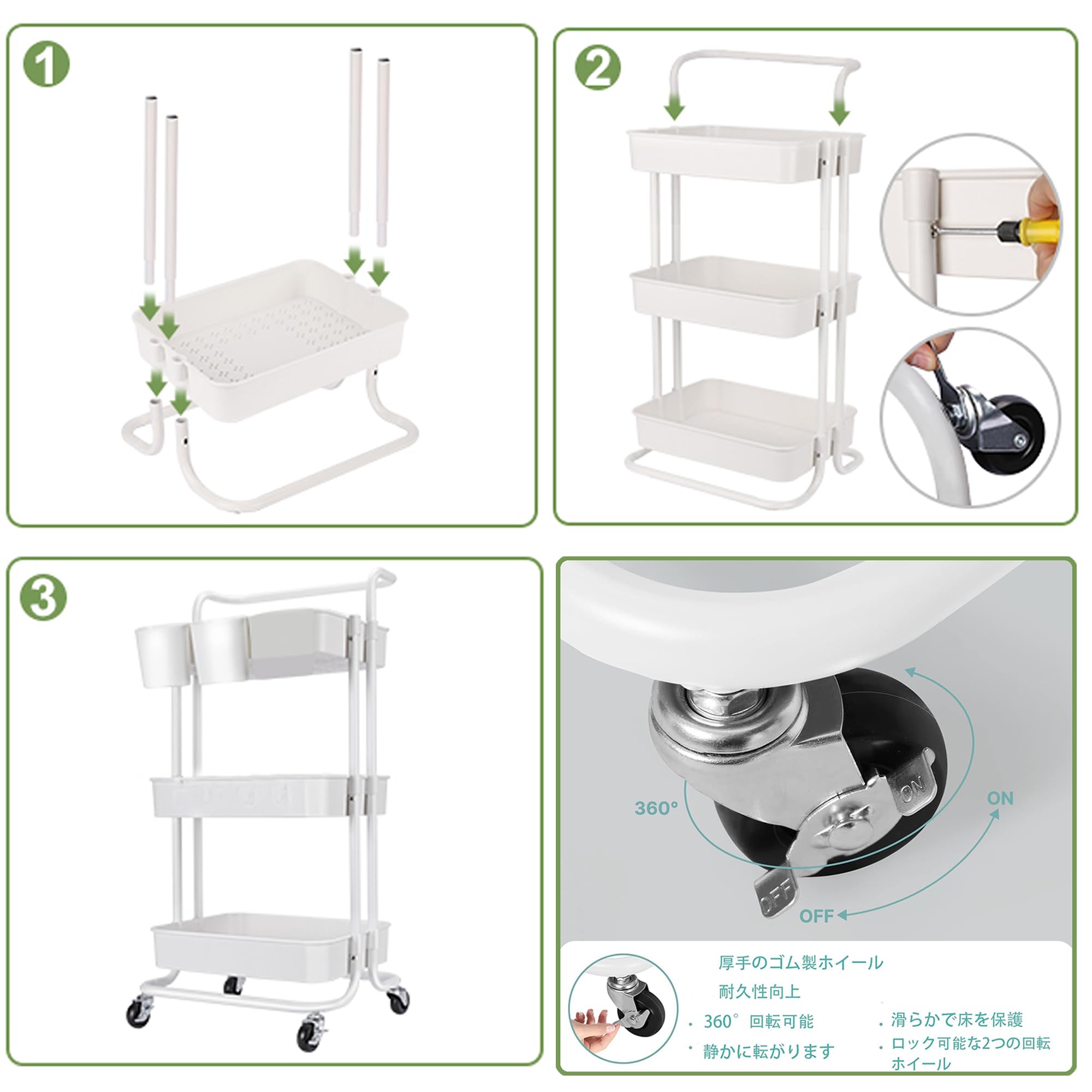 【人気商品】YANHAO ワゴン キャスター付き キャスター ワゴン キッチンワゴン 洗面所 収納 隙間収納 多機能 リビング ルーム バスルーム オフィス キッチン用 キャスター付き 組立簡単 (オフホワイト 3段) | POPストア