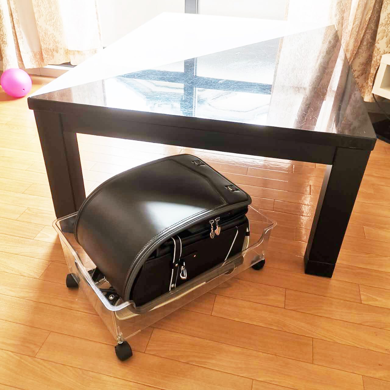 クリアーリュックが置けるカート、デスク下用大容量ランドセルワゴン、リビング学習品 荷物置き、キャスター付き机の下で出し入れもスムーズのバスケット (クリアー M)