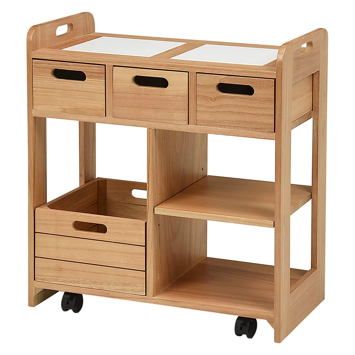 対面で使える引出しとダイニング横で使えるサイズ感が魅力の天然木キッチンワゴン。〈br〉本体サイズ:(約)幅56×奥行30×高さ62cm〈br〉引き出し内寸:幅14×奥行27×高さ10cm〈br〉BOX内寸:幅22×奥行27×高さ15cm