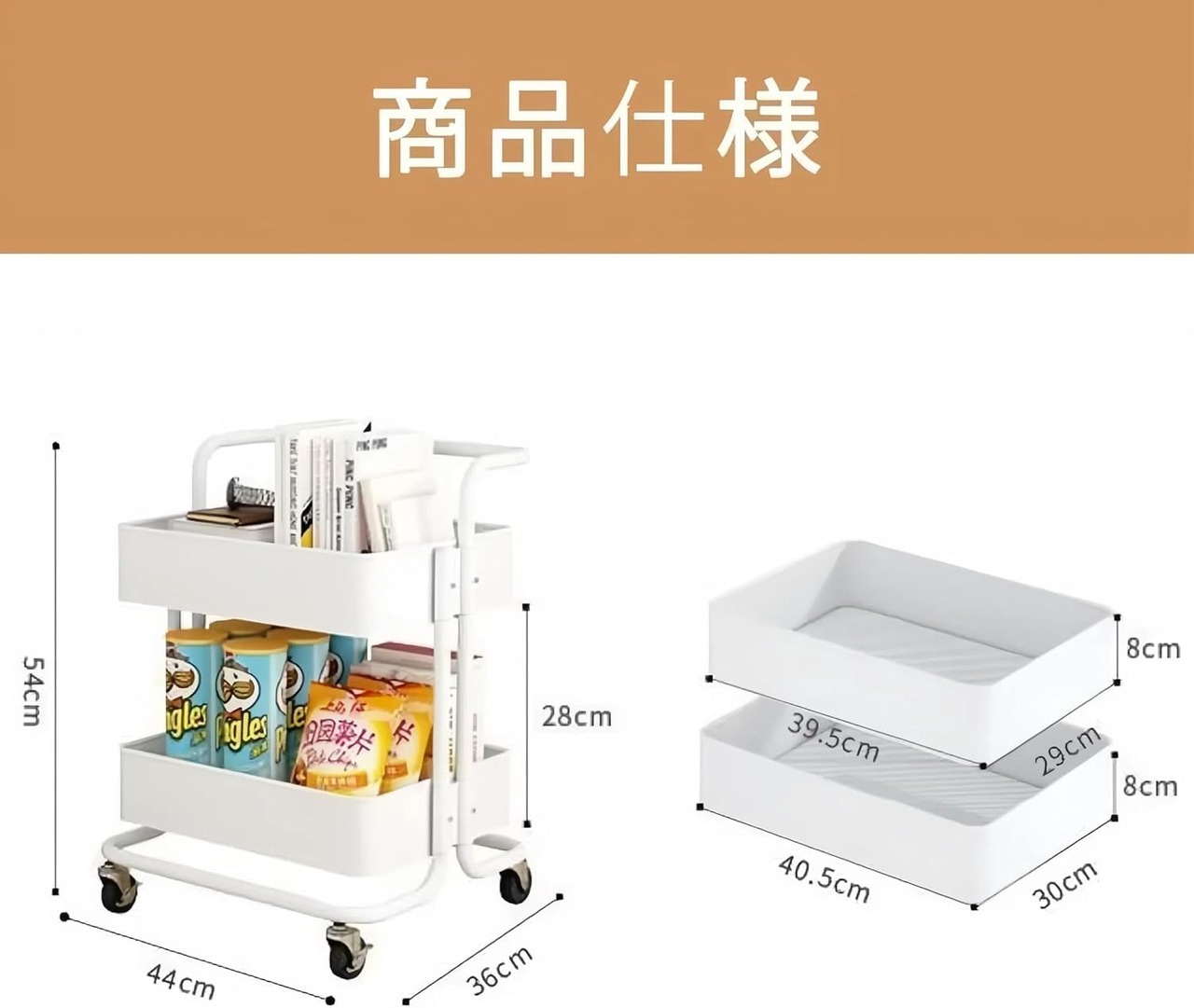 【在庫セール】キッチンワゴン 2段 キッチン ワゴン バスケットラック スリム 隙間収納 キャスター付き 収納ワゴン サイドテーブル スチール 台所収納 収納ラック 棚 バスケット 移動式 小物 台所 洗面所 冷蔵庫 (ホワイト) | POPストア
