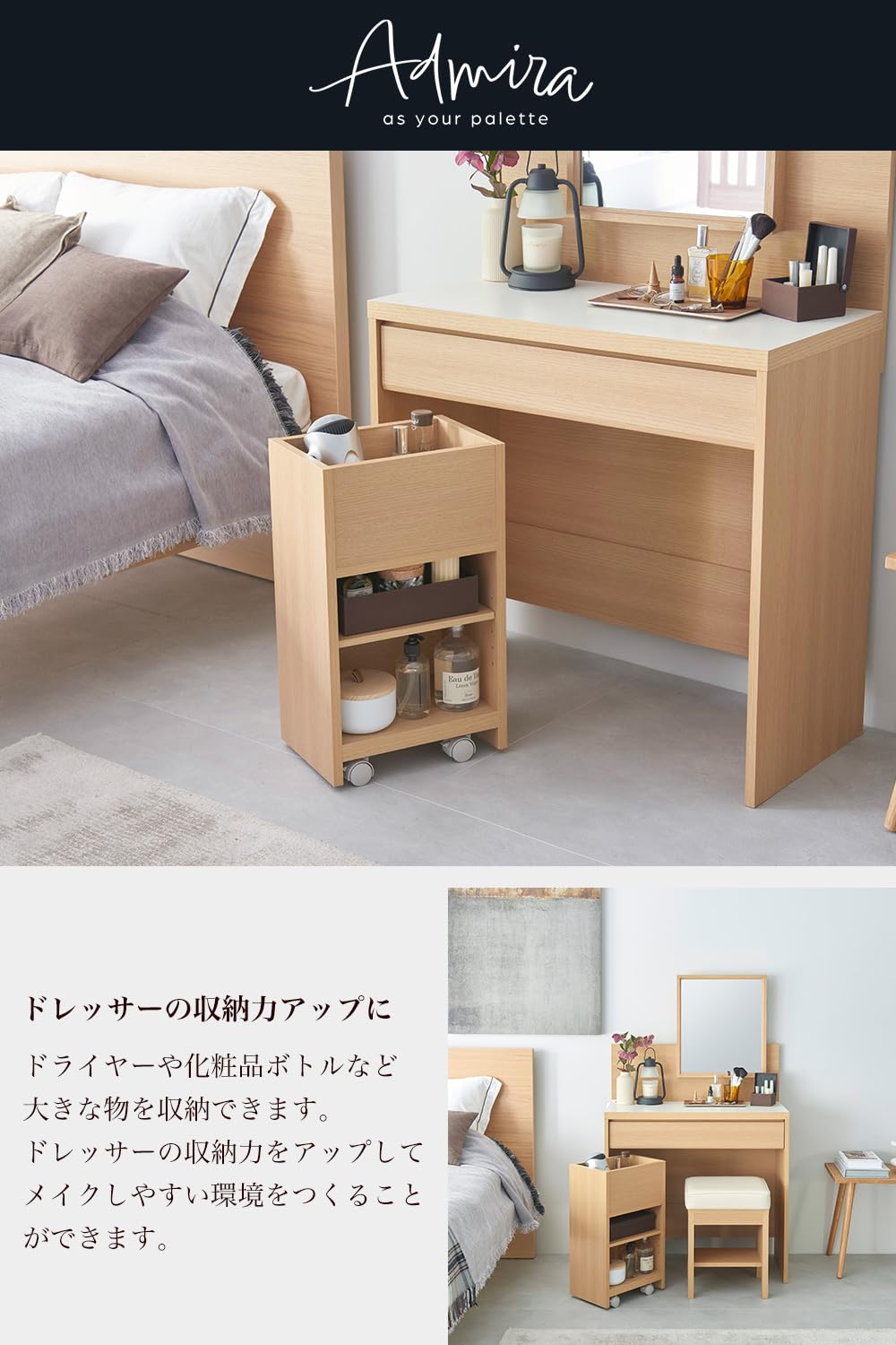【商品説明】化粧品やメイク道具をたっぷり収納できる引出と大きな鏡、石目調天板のドレッサー 鏡台「アドミラ」用キャスター付き サイドワゴン ラック。AMR-5535W NAは、アドミラシリーズにピッタリのワゴンです。AMR-1480DSNAをお買い上げの際、必要に応じてご購入下さい。アドミラドレッサーの引き出し下にピッタリ収まるサイズです。白井産業の他の商品は、タイトルの「白井産業(shirai)」をクリックする事で確認していただけます。