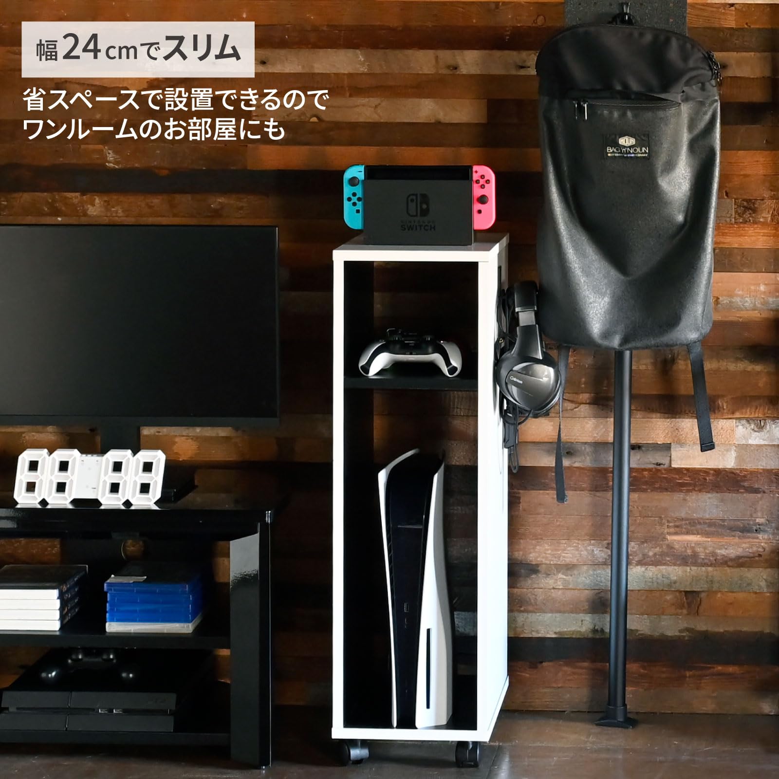 山善(YAMAZEN) ラック ゲーム機 収納ラック スリム キャスター付き 可動棚 サイドワゴン ヘッドホン掛け オープンラック サイドワゴン 幅24×奥行35×高さ80cm 組立品 ホワイト/ブラック FGR-8025(WH/BK)