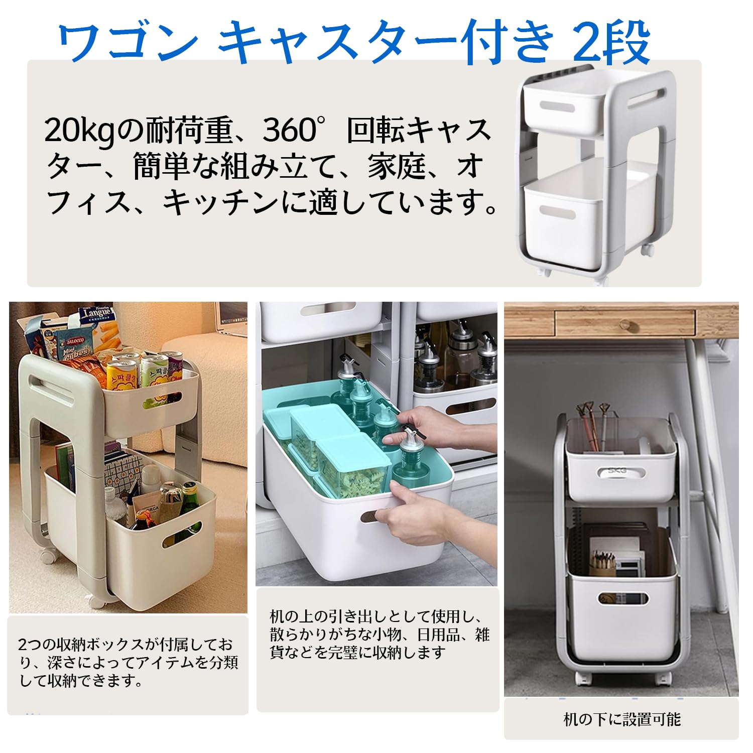 【??キャスター付き、移動が自在】360度回転可能なキャスターにはロック機構が付いており、簡単に移動でき、使用方法に応じて簡単に一か所から別のか所に移動できます。 取っ手が付いており、引き出しや持ち運びが便利です。 プラスチック素材は防水、防湿、防錆で、キッチンやバスルームに使用できます。 掃除が簡単で、布で拭くだけできれいになります。