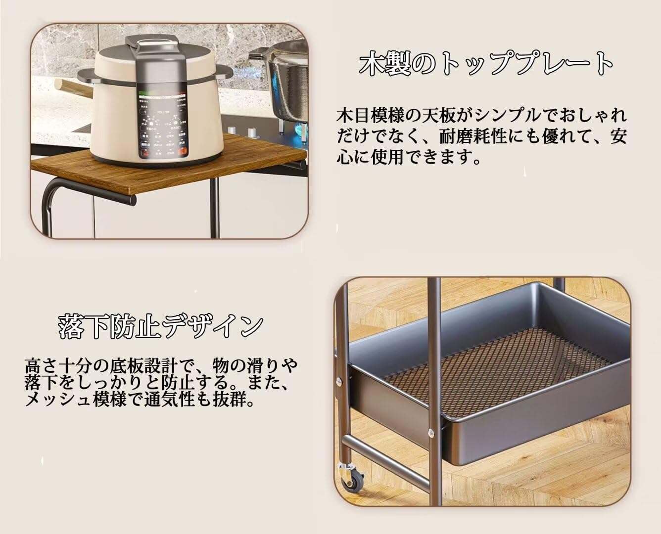 【高品質素材】このキッチン用収納ワゴンは、高強度のスチール製フレームと天然木の天板で構成されており、耐磨耗性に優れており、お手入れも簡単です。
