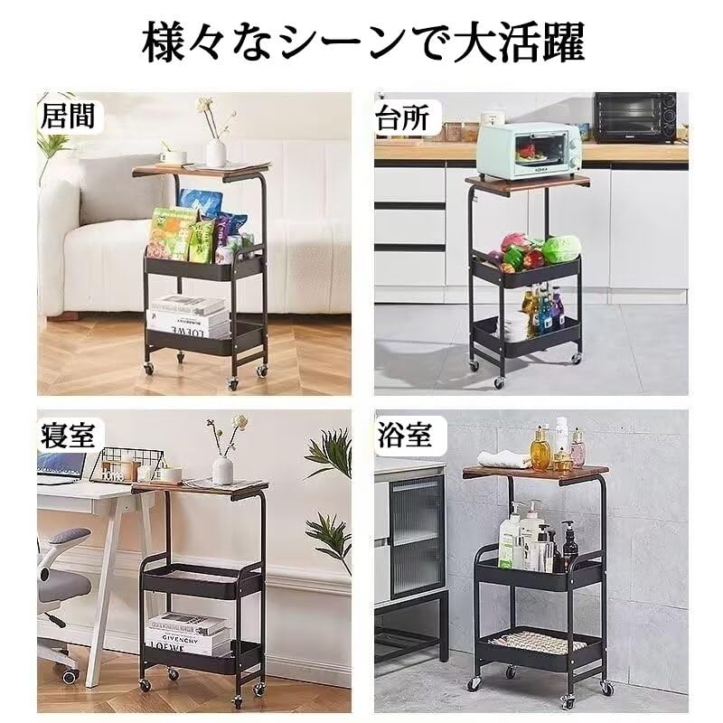 JOOHY キッチンワゴン 収納ワゴン キッチンラック スチール製 収納カート キャスター付き 三段 耐磨耗 水切り 落下防止 浴室 居間 台所 組み立て簡単 ブラック