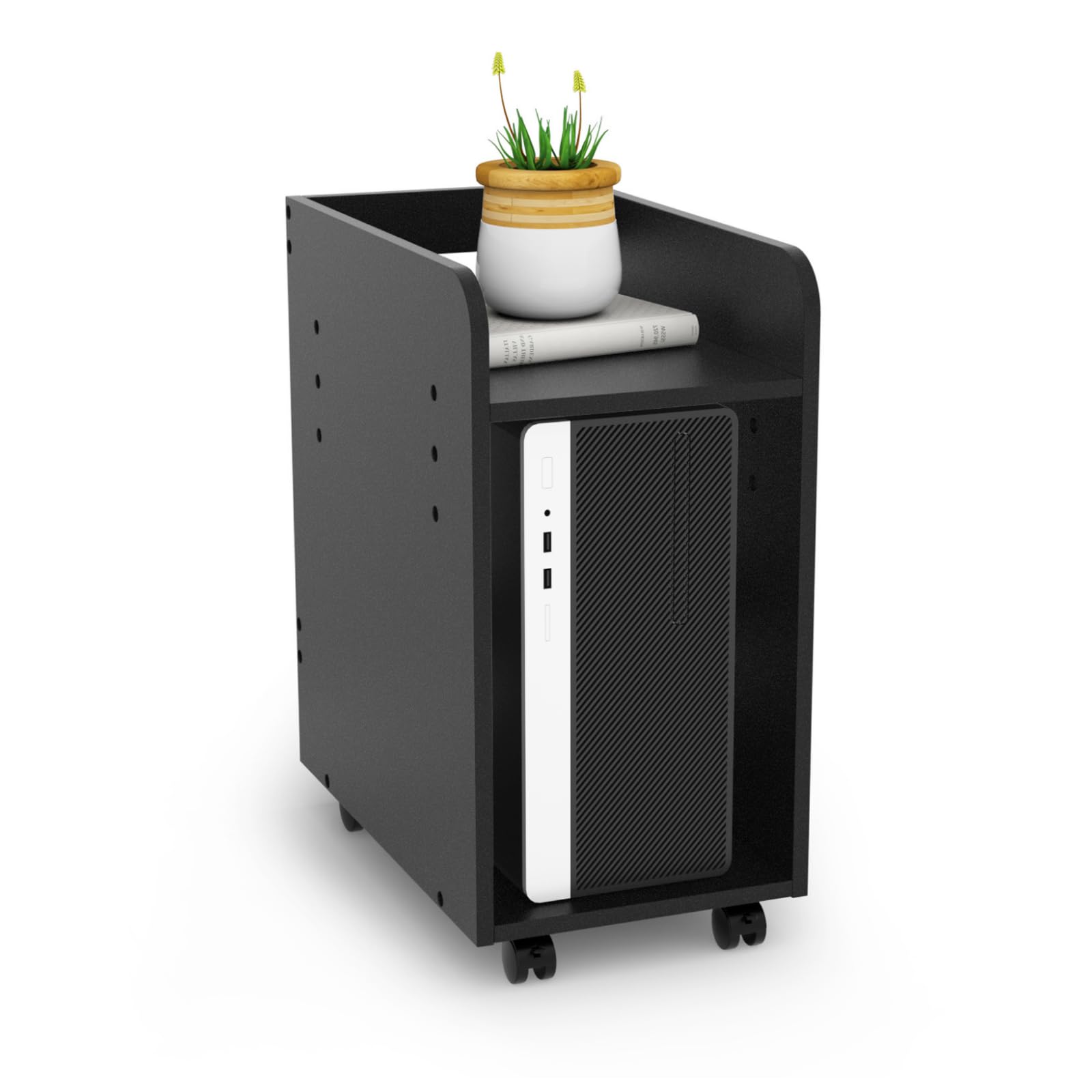 【新着商品】パソコンワゴン CPUワゴン 木製 DEWEL キャスター付き デスクサイド収納 袖机 デスク下 棚板高さ3段調節可能 丸角加工 メラミン加工 PCワゴン 組立?単 排熱を妨げない 60x50x30cm ブラック(木目) | POPストア