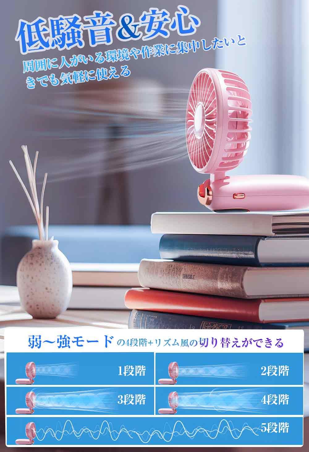 【低騒音&軽量】手持ち扇風機の羽根の枚数が多く、DCモーターを採用して、静音性に優れて、周囲に人がいる環境や作業に集中したいときでも気軽に使えます。小さなバッグにも入れやすく気軽に持ち運べます。一般的なスマホと同じくらいの重さなので、手持ちで長時間使用しても疲れにくいです。